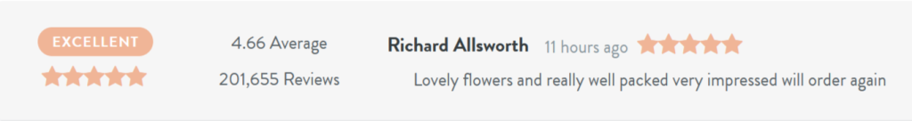 “An excellent company to deal with. The flowers are always fresh, well protected and last for ages. The team are very responsive to requests and I have never experienced a problem with them.” Mrs Patricia Hall