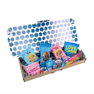 Discover plant-based snacks, specialty treats and premium chocolates in our inclusive letterbox-friendly branded vegan presentation. Specially selected for dietary requirements, this inclusive collection offers exceptional quality vegan products delivered through your letterbox. This hamper contains 7 items: Love Corn Salt & Vinegar 20g Popcorn Shed Toasted Marshmallow Popcorn Mini Pack 7g Buttermilk Plant Powered Double Choccy Crisp Snack Bar 23g Creative Nature Gnawbles Super Salted Caramel 30g Forest Feast Salted Dark Chocolate Almonds 40g Sweet FA Double Chocolate Twin Pack Sweet FA Oat & Raisin Twin Pack Packed in a branded letterbox friendly gift box.