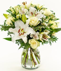 The Orient is a classic white arrangement full of fragrant white oriental lilies, white roses and alstroemeria, complemented perfectly by the freshest seasonal foliage. Sent in a special Eflorist box designed to protect the stems and provide a pleasant unboxing experience. The flowers arrive in bud, and with just a splash of water and our included flower food, the blooms will gradually open up within two days, revealing their beautiful final form. And with tracked delivery, you can track the progress of your vibrant bouquet, knowing exactly when the surprise reaches your loved one. Emotions that cannot be described, at a price you will love.